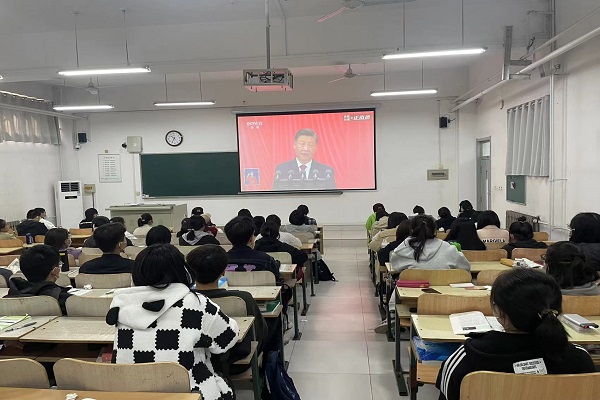 学院在严格落实疫情防控要求基础上,组织学院领导班子和全体教职工在学院会议室集中收看大会盛况,组织在校学生以班级为单位在教室集中收看大会盛况,组织实习学生和个别因故不能参加集中收看的师生员工通过网络、电视、广播、手机客户端等多种形式收听收看大会盛况,认真聆听习近平代表第十九届中央委员会向党的二十大所作的报告。