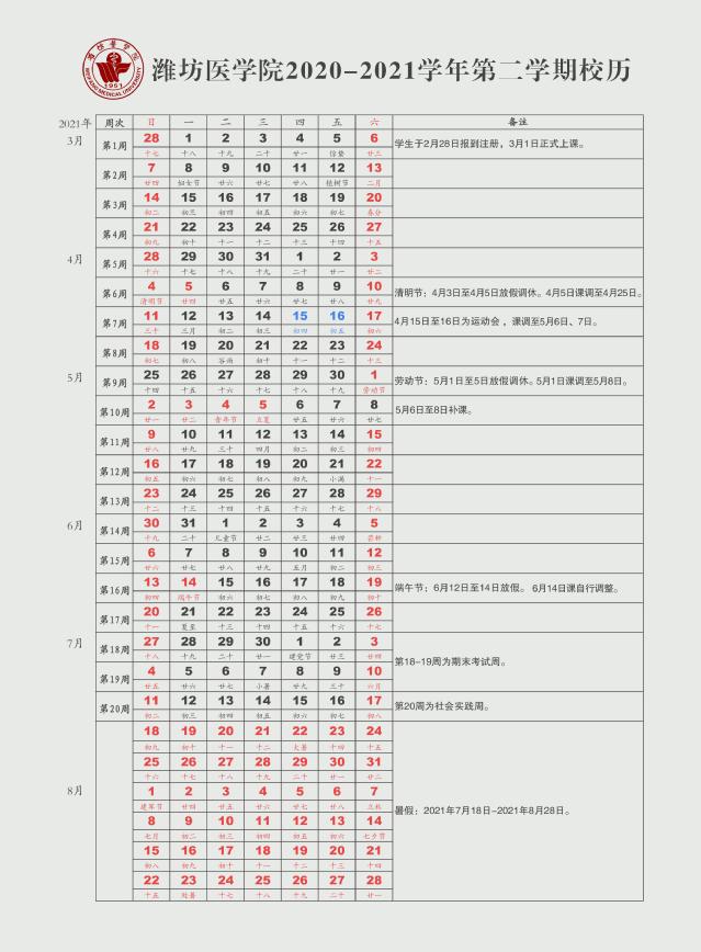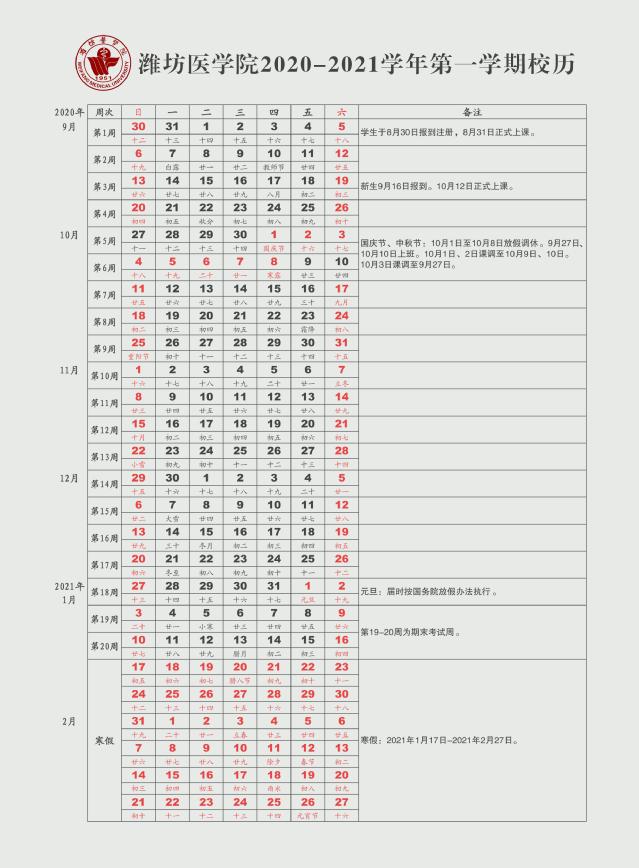 2020-2021学年校历查看