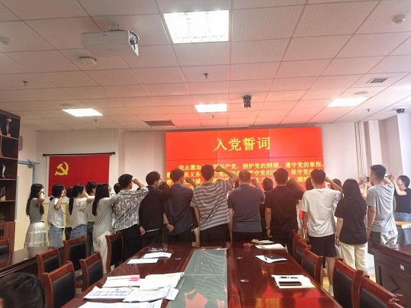 为庆祝中国共产党成立104周年,扎实开展深入贯彻中央八项规定精神学习教育,“七一”前夕,17k小说 党总支举行“庆七一”党员宣誓仪式。学院党总支书记邱玉刚、副书记王雪净及学生党支部全体党员参加此次活动。